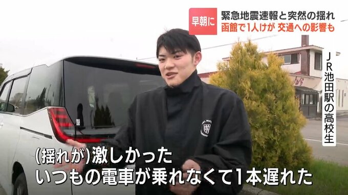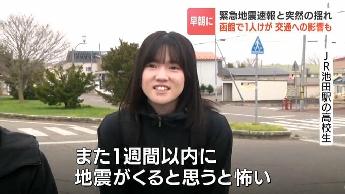 早朝の緊急地震速報と突然の揺れ 北海道浦幌町で震度5強 震度4の函館では90代女性がけが 専門家は…後発地震注意情報とは「直接的な関係があまりない」 北海道放送 2026年4月27日(月) 17:40 国内 JRは85本が運休 高校生「いつもの電車に乗れず…」 また交通への影響も…。JRは線路の安全点検などのため、これまでに85本が運休しました。 JR池田駅の高校生 「(揺れが)激しかった。いつもの電車が乗れなくて一本遅れた」 「また1週間以内に地震がくると思うと怖い」
