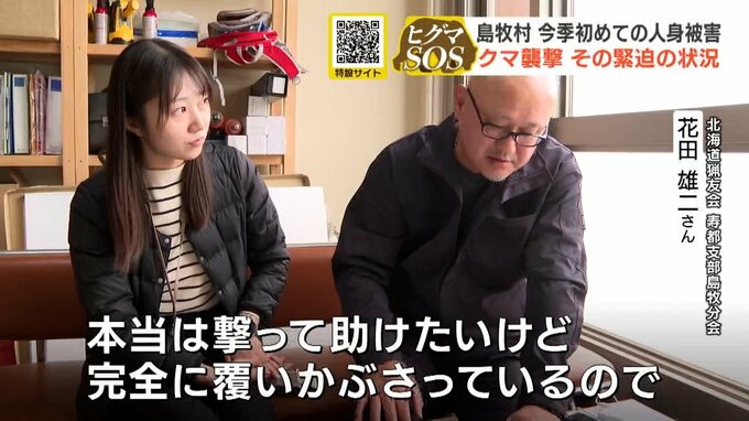 「(クマが)うなりながら落ちてきたので生きているのを確認したので無線で『生きているから気をつけて』と本人に言った。本当は撃って助けたいけど完全に覆いかぶさっているので本人に当たる可能性もあるからそれもできない。(クマが)離れたすきに撃った。それでも一発撃ってからさらに覆いかぶさった」