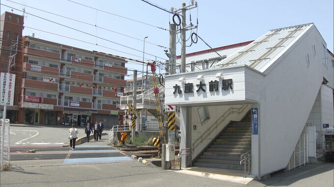 福岡市東区にあるJR九産大前駅では、4月から地元の貝塚幼稚園の園児達の声が利用者に注意を呼びかけています。