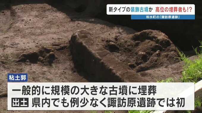 一般的に規模の大きな古墳に埋葬されることが多いとされる粘土郭は、熊本県内でも例が少なく、諏訪原遺跡で出土したのは初めてのことです。