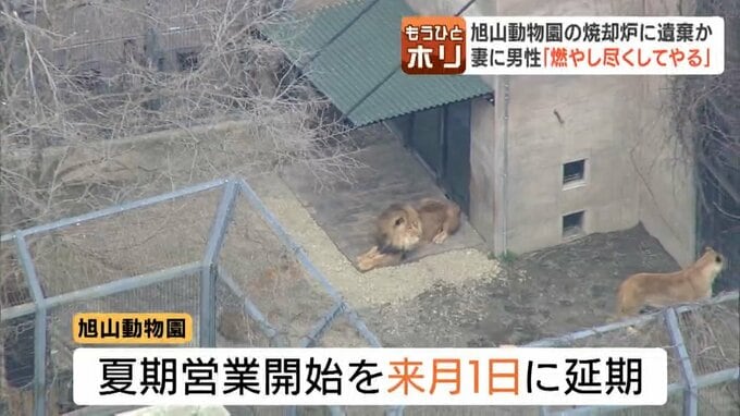 【捜査の行方】「燃やし尽くしてやる」旭山動物園職員、妻を園内の焼却炉に遺棄か 妻は3月末ごろから行方不明 灰になるとDNA鑑定困難?立件にハードルか 北海道放送 2026年4月27日(月) 20:25 国内 旭山動物園は、夏期営業開始を5月1日に延期 旭山動物園は、ゴールデンウィーク初日の、あさって29日に、夏の営業を始める予定でしたが、旭川市は、警察の捜査を受けて、開園を5月1日に延期することを発表しました。