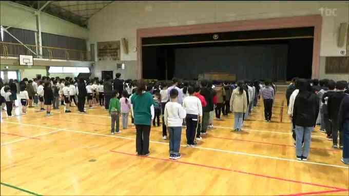 小学校では全校集会が開かれ、子どもたちが亡くなった児童に黙とうを捧げました。