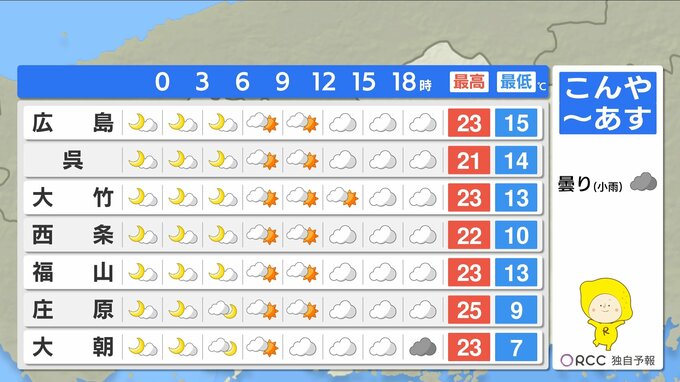 【あす4/28(火)広島天気 】曇り空 午後ほど雲多い 昼間は上着いらず 汗ばむ体感に 中国放送 2026年4月27日(月) 18:43 国内 天気 昼間は上着いらず 南風吹いて汗ばむ体感に 最低気温は、北部や内陸部では1ケタの予想です。厚手の上着が必要でしょう。日中の気温は25℃近くまで上がり、夏日の地点もあるでしょう。昼間は上着いらずの陽気になる見込みです。汗ばむ体感になるでしょう。