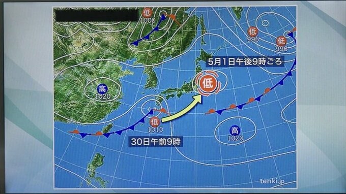 大槌町の天気 5月1日にまとまった雨降る可能性 気象予報士による解説 岩手 IBC岩手放送 2026年4月27日(月) 18:59 国内 浅見キャスター 少しでも火の勢いが衰えると良いですが。 照井気象予報士 本当にそう願いたいところですが、そこまでの効果が期待できる雨量ではありません。 【画像はこちらから】 そしてさらに先、5月1日(金)ごろ本州の南岸を進む低気圧が三陸沖に進む見込みで、このタイミングで沿岸を中心にまとまった雨が降る可能性があります。 【画像はこちらから】 低気圧の進む方向と発達の度合いにもよりますが、雨だけでなく風が強まり荒れた天気になる恐れがあります。