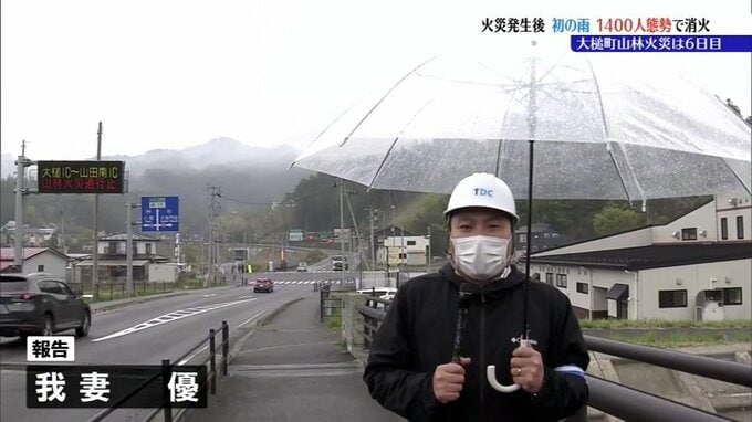 山林火災の発生から6日目を迎えた岩手県大槌町では火災発生後、初めての雨が観測されました。