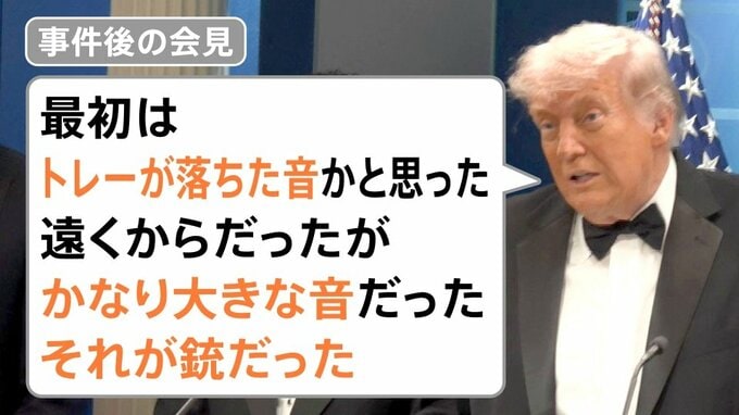 事件後の会見でトランプ大統領は、「最初はトレーが落ちた音かと思った。遠くからだったがかなり大きな音だった。それが銃だった」としています。