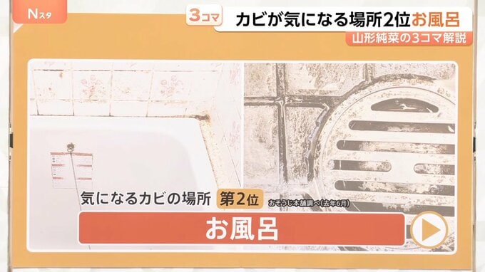 家事アドバイザーの矢野きくのさんによると、「この後、梅雨の時期になりますので、その前にカビの菌を根こそぎ取っておく。30分あれば十分に掃除ができます」ということです。
