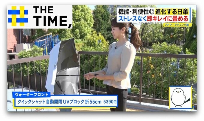 そんな悩みを解決してくれるのが、“5秒でたためて”ワンタッチ開閉の「クイックシャット 自動開閉 UVブロック 折55cm」(ウォーターフロント/5390円)