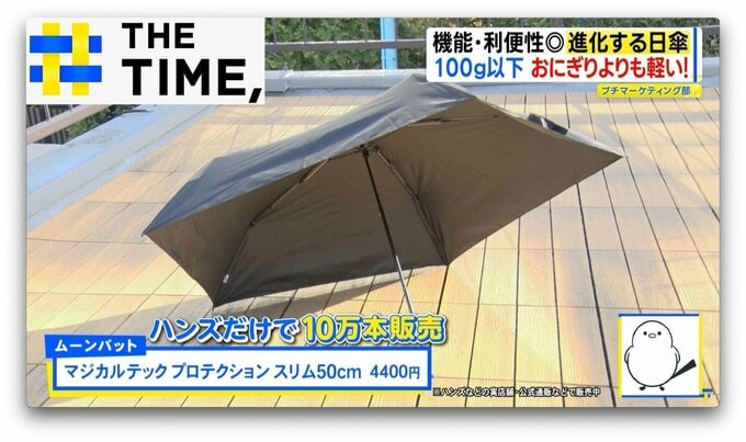 1万本売れるとヒットと言われる傘業界で“ハンズだけで10万本販売”と売れに売れているのは『ムーンバット』の晴雨兼用折り畳み傘「マジカルテック プロテクション スリム50cm」(4400円)※ハンズなどの実店舗・公式通販などで販売中