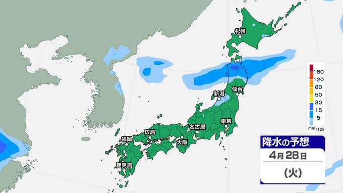 【大雨情報】GWは荒天?30⽇から5⽉1⽇ごろ北⽇本・東⽇本を中⼼に荒れた天気、⻄⽇本や沖縄・ 奄美では警報級のおそれも 28日(火)~5月3日(日)雨風シミュレーション【気象庁 28日現在】 2時間前