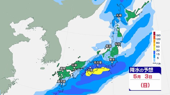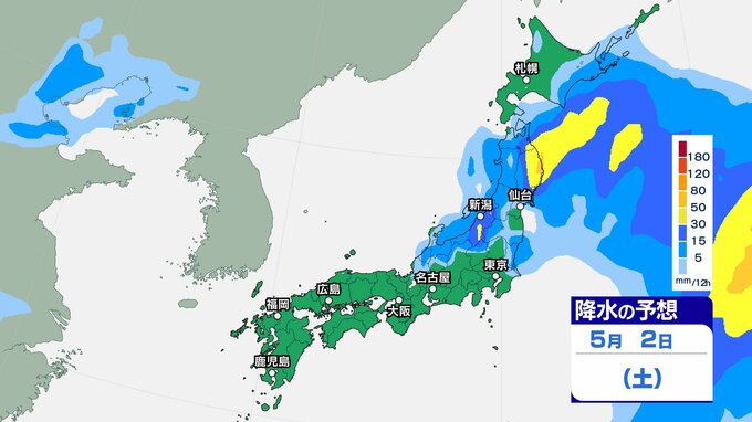 【大雨情報】GWは荒天?30⽇から5⽉1⽇ごろ北⽇本・東⽇本を中⼼に荒れた天気、⻄⽇本や沖縄・ 奄美では警報級のおそれも 28日(火)~5月3日(日)雨風シミュレーション【気象庁 28日現在】 2時間前
