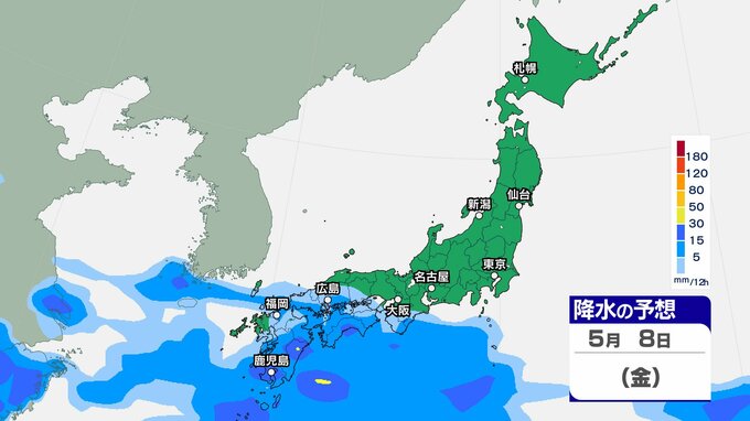 【大雨情報】GWは荒天?5月1日から2日にかけて北⽇本から⻄⽇本にかけての太平洋側を中⼼に⼤⾬・荒天のおそれ 28日(火)~5月3日(日)雨風シミュレーション【気象庁 28日現在】 RSK山陽放送 2026年4月28日(火) 08:11 国内 5月6日(水)~5月8日(金) ▶【画像】28日(火)~5月3日(日)3時間ごとの雨風シミュレーション ▶【画像】28日(火)~5月3日(日)3時間ごとの雨風シミュレーション