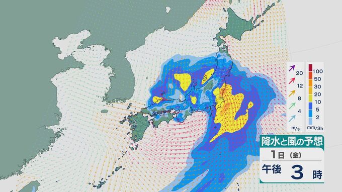 【GWの天気】4月30日(木)から5月1日(金)は広く荒れ模様の天気で大雨のところも ゴールデンウィーク前半は雲が広がりやすくなる見込み 雨と風シミュレーション 北陸放送 2026年4月28日(火) 13:45 国内 5月1日は、未明から朝にかけては四国や近畿で南からの湿った空気の影響で雨が激しく降りそうです。 昼前からは、発達した雨雲が東海や関東に達しそうです。
