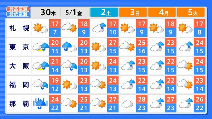 気象庁によりますと、28日から30日にかけて、日本列島は広い範囲で大気の状態が不安定になる見込みです。東北や北陸では落雷や突風、西日本や関東では強風に注意が必要となります。
