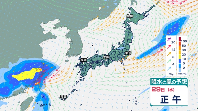 ・沖縄地方:29日〜30日にかけて注意。