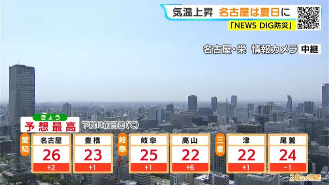 きょうは気温が高くなり、名古屋や岐阜などでは夏日になるでしょう。