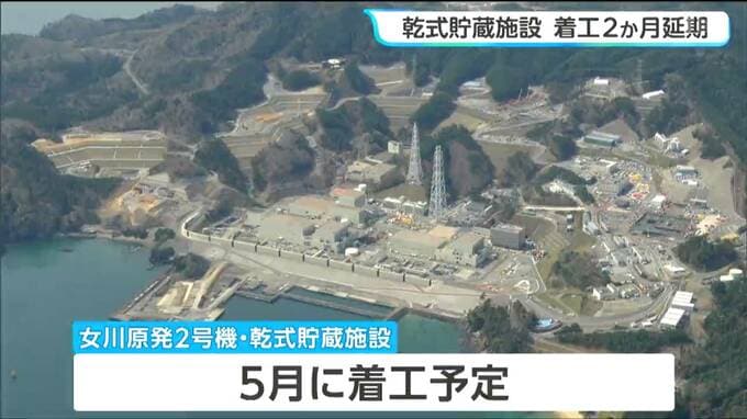 東北電力女川原子力発電所2号機に設置予定の乾式貯蔵施設について、着工時期が今年5月から7月に2か月延期されることになりました。