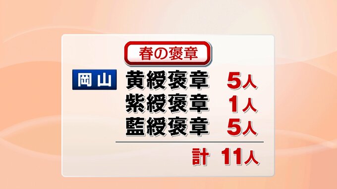 岡山県では、黄綬褒章に5人、紫綬褒章に1人、藍綬褒章に5人のあわせて11人が選ばれました。このうち、スポーツ・芸術文化での優れた業績をたたえる紫綬褒章を受章するのは岡山市出身の木村葵来選手です。