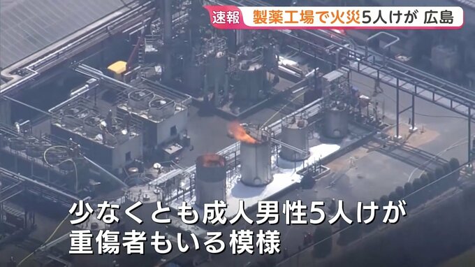 「タンクが爆発した」広島・三次市の製薬工場で火災 男性5人けが、重傷者も 消防車8台が出動し消火活動中 中国放送 2026年4月28日(火) 14:04 国内 火災現場は中国道・三次ICに近い工業団地 この火事で、少なくとも成人男性5人がけがをしていて、重傷者もいるとみられています。 現在、消防車8台が出動し、消火活動にあたっています。 現場は中国自動車道の三次インターチェンジにほど近い工業団地です。