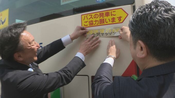 マグネットシートは2025年よりも200枚多い3700枚用意され、市内を走る路線バスやタクシー、代行タクシーなどに掲示し大会をPRします。