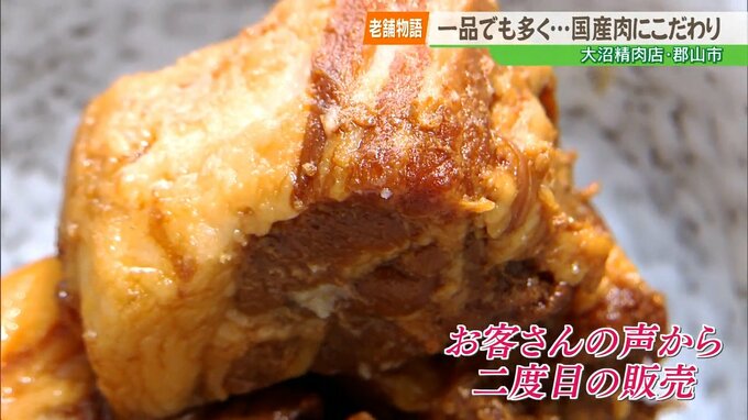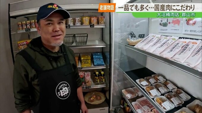福島県内で長く愛されている老舗の今を伝える「老舗物語」。今回は、国産肉を扱い、地域で愛される郡山市の精肉店です。食卓に1品でも多く、おかずが並ぶことを願う、店主の思いを取材しました。