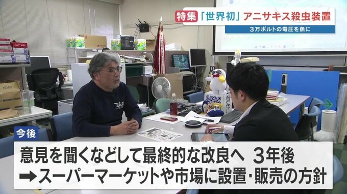 技術自体は完成しましたが、今後は使用を検討する業者から意見を聞くなど最終的な改良をして、3年後をめどにスーパーマーケットや寿司店、市場などに装置を販売する方針です。