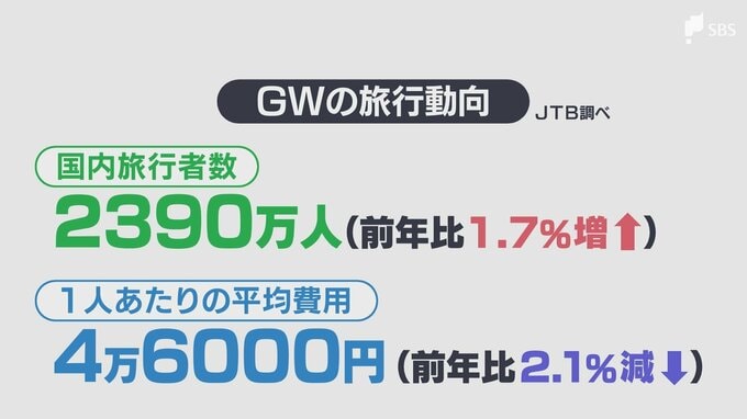 大手旅行代理店のJTBによりますと、2026年のゴールデンウィークに国内旅行をする人は増える見通しですが、1人当たりの支出は減少する見込みです。