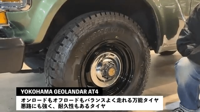 タイヤは横浜ゴムの「YOKOHAMA GEOLANDAR AT4」が組み合わされており、オンロード&オフロード走行の両方に対応する仕様で、尾形さんは「オフロードもバンバンいける」と、力強くコメントしています。