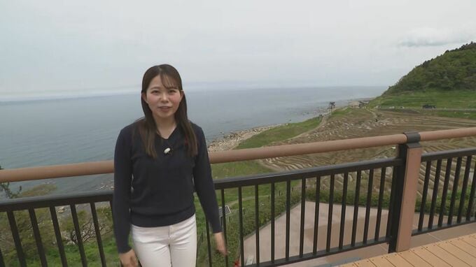 渡邉百音キャスター「奥能登の観光名所、白米千枚田ですすぐ横の道の駅に高校生が考えたある仕掛けがあるというのですが…あ!ありました、こちらですQRコードを読み取ると「まいりん」というキャラクターがゲットできました」