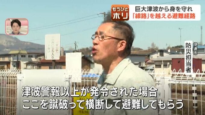 伊達市は、JR北海道と協議し、津波の避難に限って線路内に立ち入れるよう、西浜地区の1か所に、蹴破り型の非常扉を設置しました。来月1日から、新たな「避難経路」として運用が始まります。