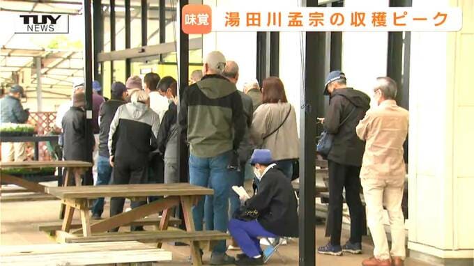 湯田川孟宗を販売するもんとあ~る白山店では営業前からおよそ30人が列を作っていました。