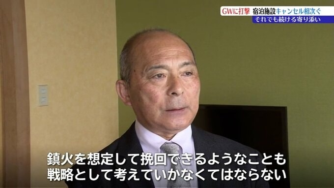 「お客さんも部屋に入った途端に感動してくださるオーシャンビュー。ゴールデンウイークも、連日満室で賑わいをというところの段取りまでできて今回のことなので。今のところ、ゴールデンウイークのところで延べ人数で500人前後まできている」