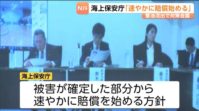宮城海上保安部の巡視船から重油が漏れ出した問題で、国と宮城県による対策会議が初めて開かれました。この中で海上保安庁から、漁業被害が確定した部分から速やかに賠償を始める方針が示されました。