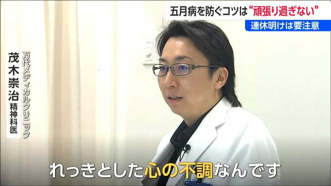精神科医の茂木さんによりますと、五月病は4月の進学や異動による「頑張りモード」が、連休をきっかけに緊張が一気に緩むことで起こる心の不調。新年度に変化がない人も注意が必要です。