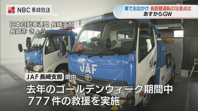 最大12連休となることしのゴールデンウィーク。JAFによりますと、去年のゴールデンウィーク期間中、長崎県内で777件の救援を行いました。