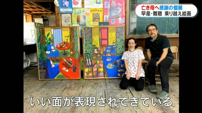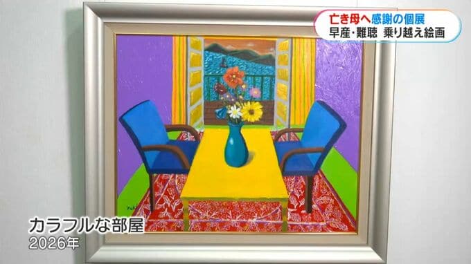 「天国から見ていますか?」亡き母へ感謝の個展 662グラムで生まれ難聴と知的障害 31歳の女性が地元で初開催 南日本放送 2026年4月28日(火) 20:33 国内 淡い色を何度も重ね複雑な奥行きを表現した初期の作品。 ひときわ鮮やかな最新作は、部屋の奥の大海原を想像させます。 (絵を指導 洋画家・佳月優さん)「色彩や線や構図がすべて勢いがあり、色がきれい。いい面がどんどん表現されてきている」