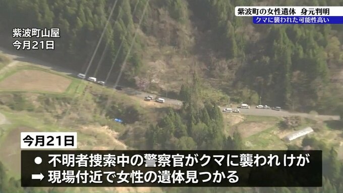21日に、岩手県紫波町で行方不明者を捜索していた警察官の男性がクマに襲われけがをした現場で発見された女性の遺体の身元が判明しました。
