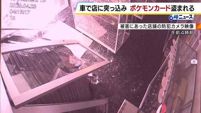 ポケモンカードなどの大量窃盗。大胆な犯行の一部始終を、防犯カメラが捉えました。 28日午前4時前、大阪市浪速区のトレーディングカード専門店の防犯カメラ映像。シャッターが閉められた店舗に車がバックで突っ…