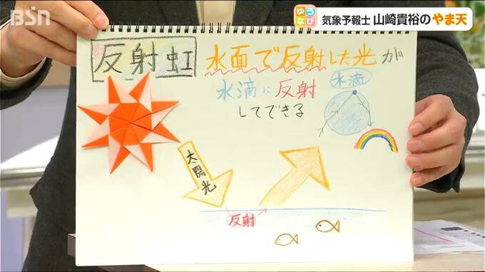 虹は、太陽の光を水滴が反射させて生まれるもの。