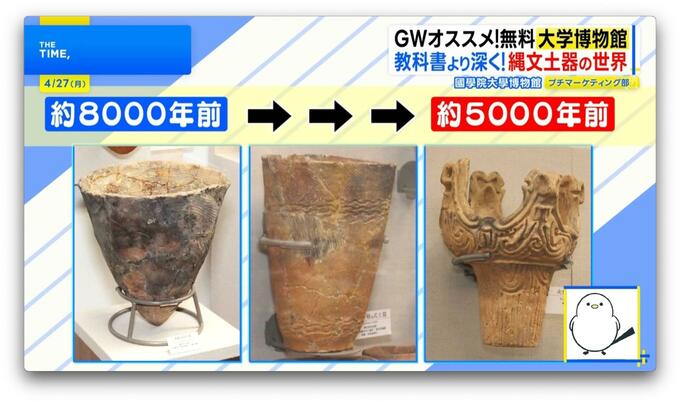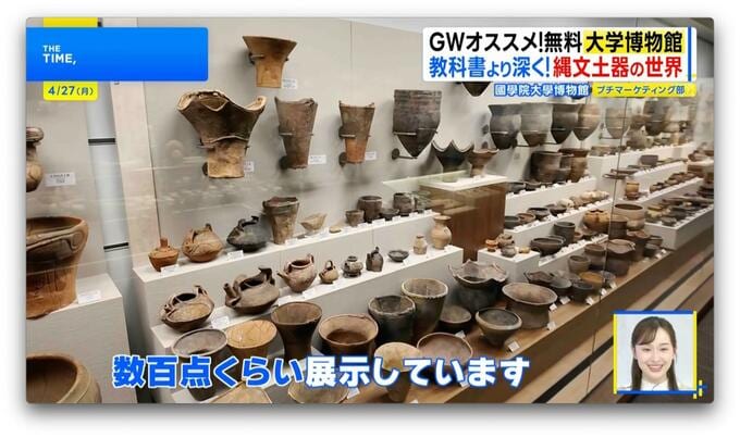 約10万点の収蔵品から一部を展示しており、その中でも圧巻なのは、数百点もが展示されている「縄文時代の土器」。1万年以上も続いた縄文時代に、“土器がどう変化したのか”よくわかります。