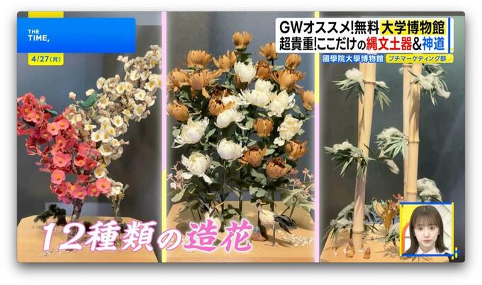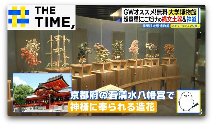 例えば、和紙で作られた松や竹、桜や水仙など12種類の植物。これは、京都の石清水八幡宮で神様に奉られる造花で、儀式では一般の人が入れない場所で捧げられるといいます。