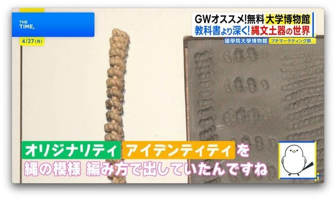 縄文土器に模様をつける「縄の編み方」を研究した標本も、“ここでしか見られない”貴重な展示。