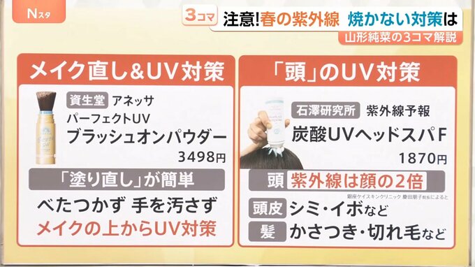 また、頭皮にもUV対策が必要だと言います。