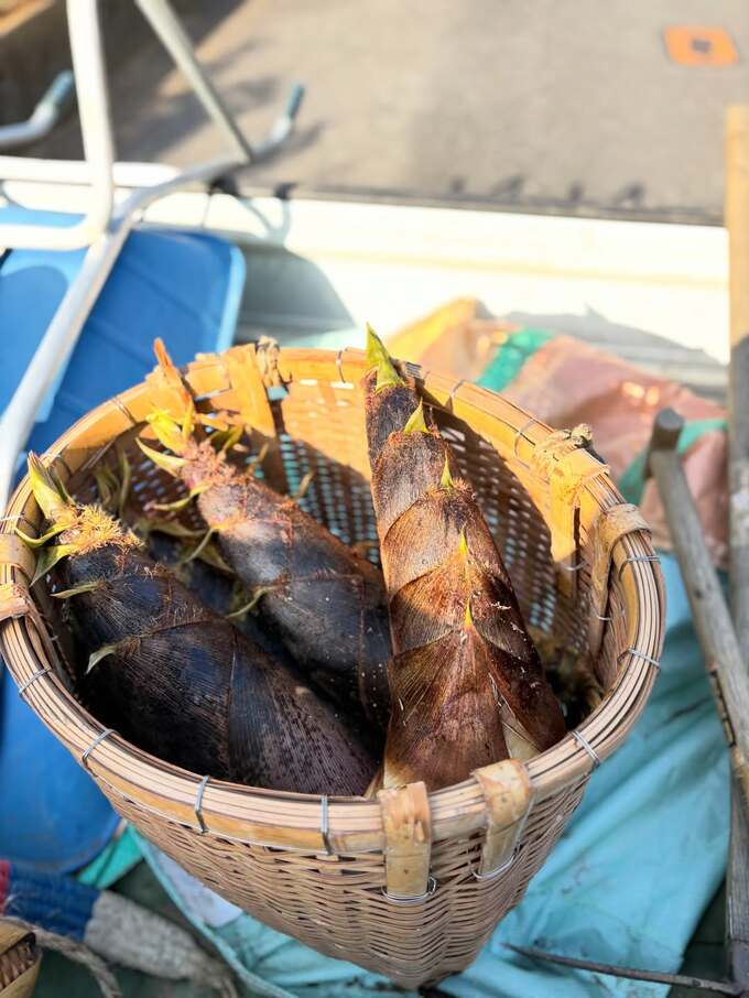 採ったタケノコを掲げる木村さんはご満悦の笑みで「2回目のたけのこは結構伸びてたけどそれも良し」と、充実の様子。さらに「山椒の葉も香りが良くて癒されました」と、鮮やかな緑を満喫していた模様です。