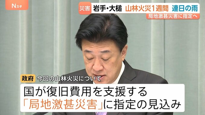 政府は28日、今回の山林火災について、国が復旧などにかかる費用を支援する「局地激甚災害」に指定する見込みだと明らかにしました。