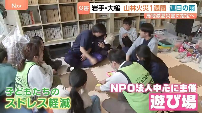 28日、避難所では子どもたちのストレス軽減に繋げようと、遊び場が設けられていました。