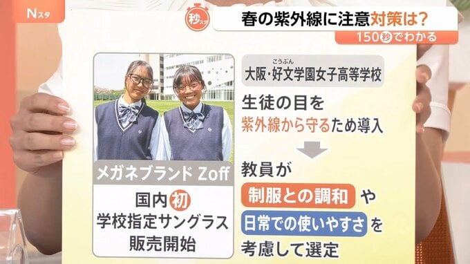 生徒の目を紫外線から守るために導入され、教員が制服との調和や日常での使いやすさを考慮して選定したそうです。