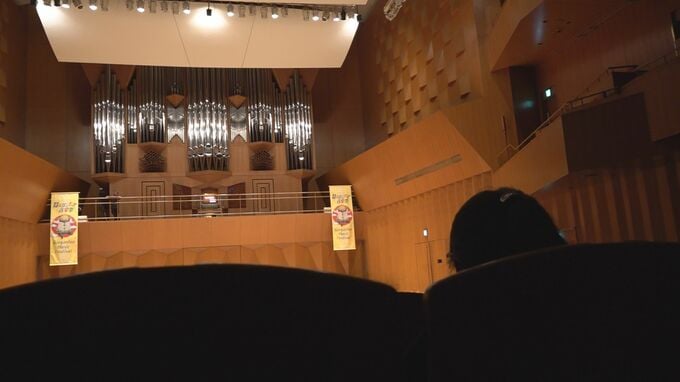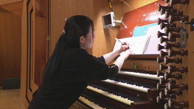 オルガニスト 黒瀬恵さん「下で聴くとやっぱり反響板が降りてるからバランスが悪く聴こえてしまう。1階席で聴いてもバランスがいいように音を組み替えようかなと思う。今は高い音が出るストップを足して下で聴いてもバランスよく聴こえるようにした。これは25年勘というか経験」