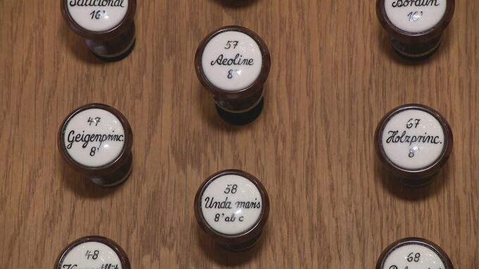オルガニストはこのつまみで音を調節しながら、5000種類以上の音を操ります。