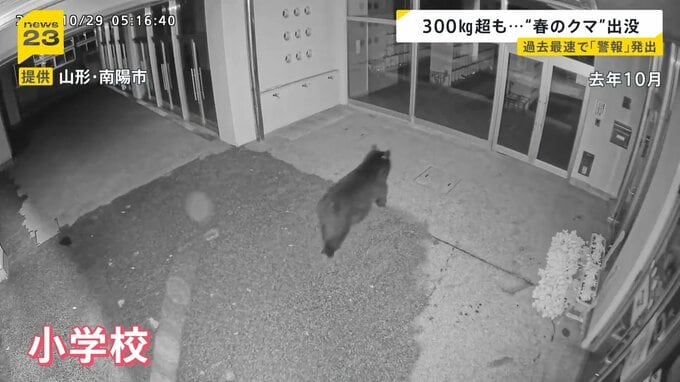 2025年、山形・南陽市の小学校に侵入した1頭のクマ。辺りの様子をうかがったあとドアに突進。ガラスが破られ、臨時休校となりました。